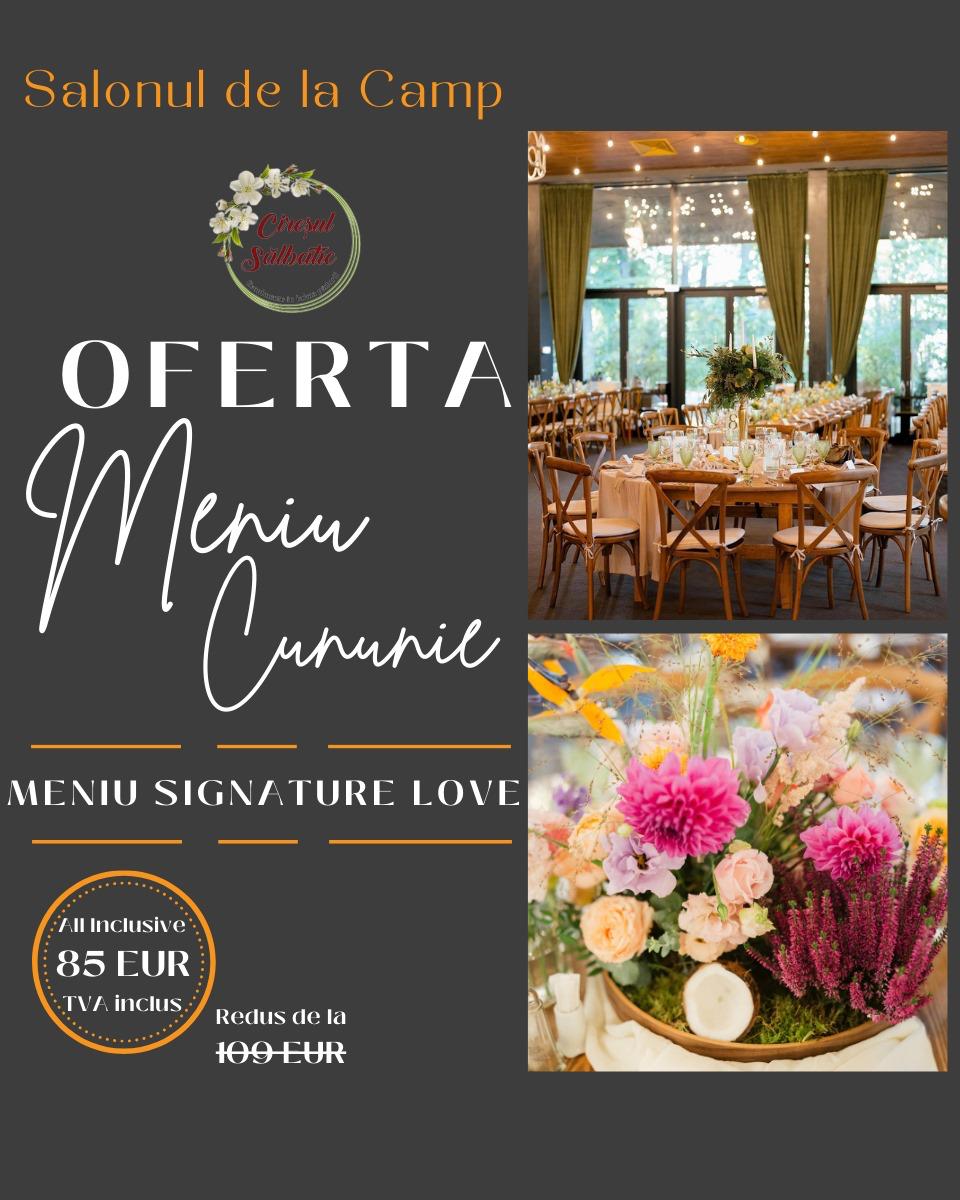 - meniuri promotionale inspirate din natura, create cu ingrediente proaspete si gandite sa completeze farmecul unei sarbatori in padure;